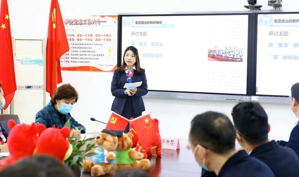 初中部教科研主任兼初一级部主任肖媛媛剖析了教科研的基本构架,并倡导教科研要科学引领、指明方向,研长组织研讨并坚持督导,备长落实研备并细化措施,从而形成三位一体的教研闭环管理。她表示,要夯实“堂清”提升课堂质效必须要做到“三以”(以学生掌握为目的、以自主学习为手段、以激发唤醒为职责)和、“三要”(备课目标要精准、教学流程要清晰、学生活动要实效)