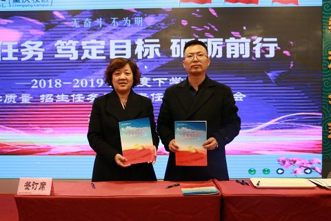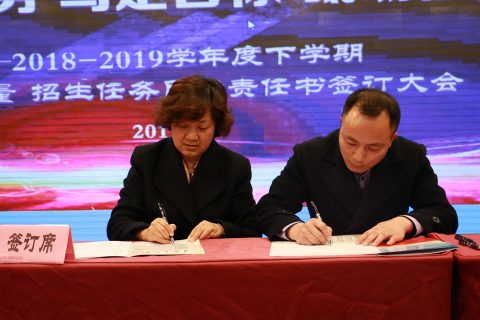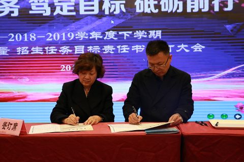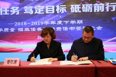 3月18日,我校全体教职员工齐聚明德楼报告厅召开了全校会。各级部负责人现场签订了2018-2019学年下学期教学质量目标责任书。