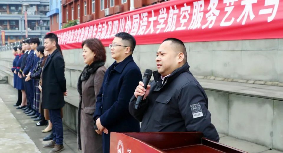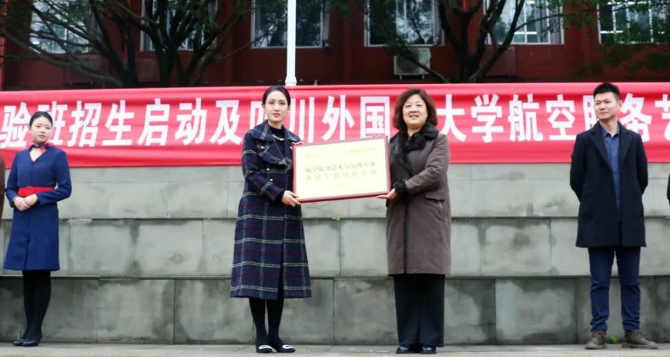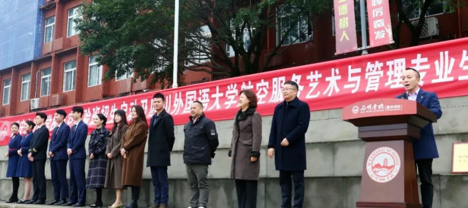 四川外国语大学航空服务艺术与管理专业项目副主任赵雅婷,代表四川外国语大学为江南手机app下载安装 授牌,重庆市江南手机app下载安装 党委书记、校长王小鹏代表江南手机app下载安装 接受授牌。
