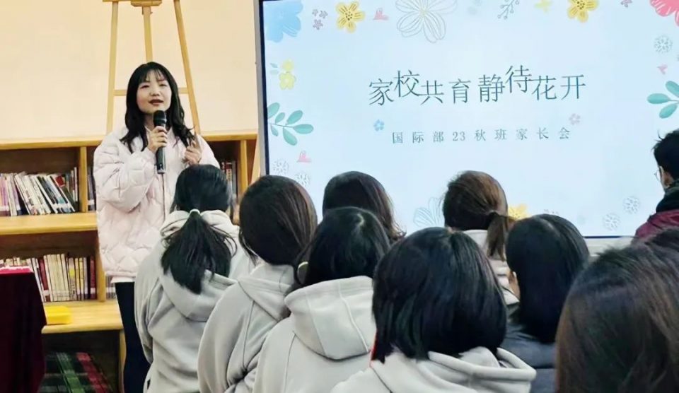 多年来,国际部致力于家校共育,通过电话、班级微信群让家长“沉浸式”体验孩子在校学习生活,为学生的成长与发展提供有力支持。会上,国际部主任余玲向家长详细介绍了国际部的教育理念:尊重每个孩子的生命差异,顺势而为。她还对孩子未来多元竞争力进行了阐释,也给家长送上关于爱的教育的叮咛。
