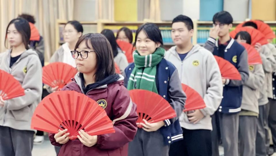 活动在国际部大课间成果展示——“扇子舞”的精彩表演中拉开序幕,伴着音乐响起,同学们一招一式,扇子在开合之间力道铿锵,不时发出“呼呼”的响声,“扇子舞”丰富了课余生活,也展示了国际部学生的青春活力。