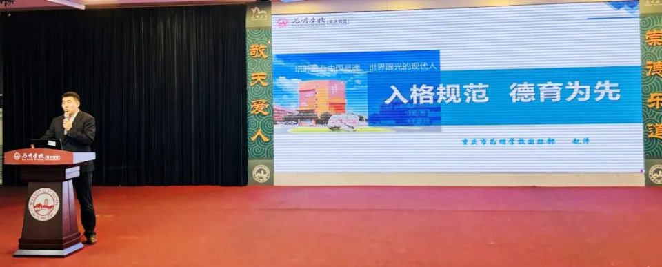 国际部德育主任赵洋介绍了学生管理等方面的最新情况,并宣读了半期常规表现表彰决定,由家长给获奖的同学们颁奖,通过表彰激励学生继续努力,共赴未来。