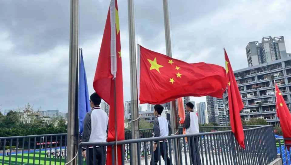 运动会在庄严的国歌声中拉开序幕。