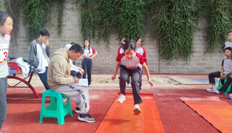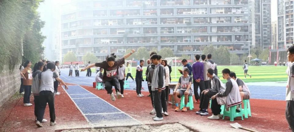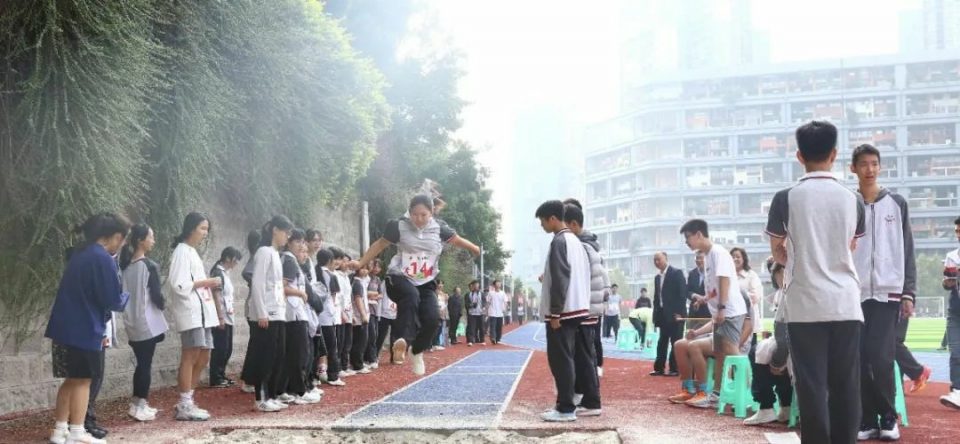 而另一边的田赛现场,为明学子实心球每一次的奋力一抛,立定跳远每一次的拔地而起,急性跳远每一步的蓄势待发,都只为追求更高、更远,这是为明人志存高远的完美传承和最佳见证。