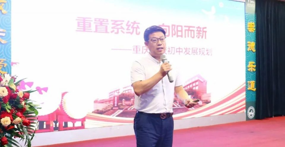 党委副书记、初中部校长冉启兵总结了初中部上学期工作,并对新学期各项工作进行了设计。他以《重置系统 向阳而生》为主题,就品牌目标、规模目标、质量目标进行了定位梳理,分享了达成目标的具体措施,明确了做粗初中,做靓品牌的总体方向,为打造升学教育的高地,素质教育的摇篮,特长教育的温床,健康成长的乐园而持续奋斗。