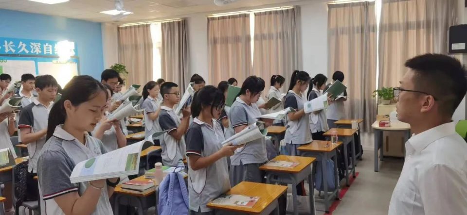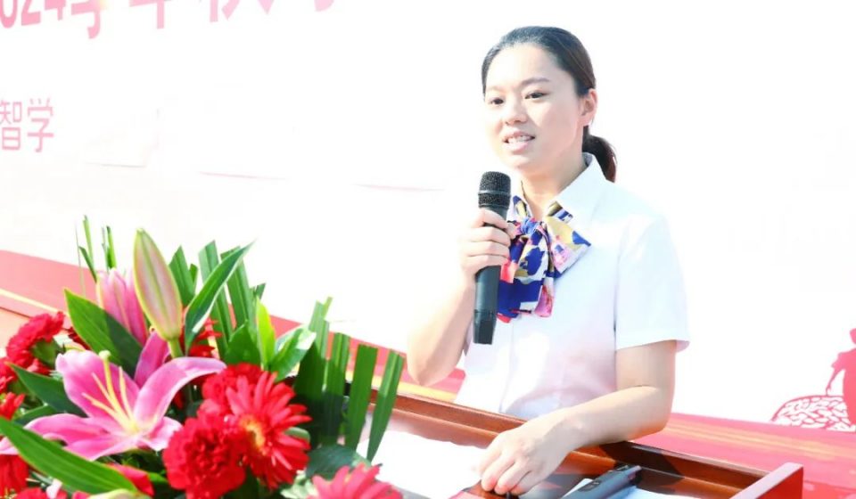 初中部语文老师,优秀班主任王舒宣,在今年6月的中考当中,她带领孩子们绝地反击,成功逆袭,考出了优异的成绩,今天作为班主任代表为同学们送上寄语。她表示,在新的一学年,会和全体教师一样,通过智慧的研讨,改变教学方式,将坚持以学生为中心,实现由教到学的转变,提升课堂教学质量,为孩子们的成长赋能,为学生成长奠基!