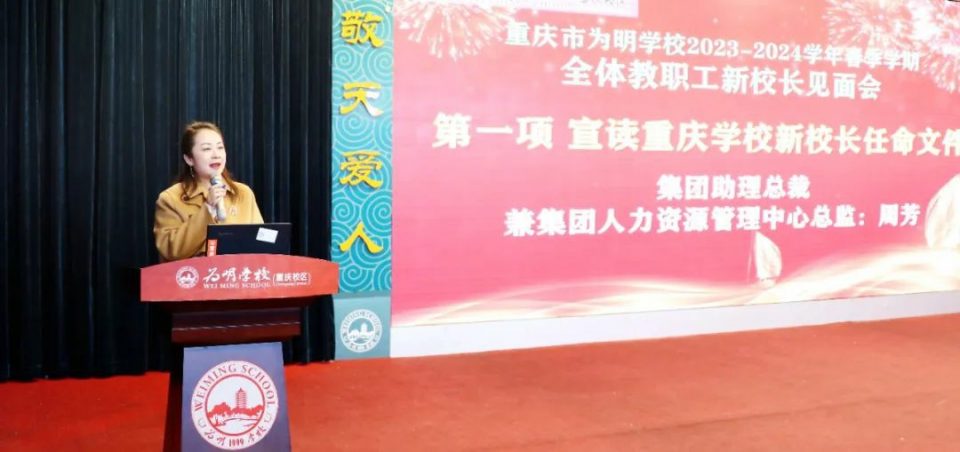 为明教育人力总监周芳女士宣读关于王锡元先生职务任命的决定:
