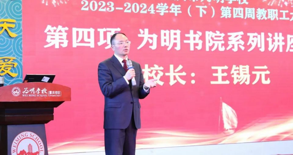 校长王锡元传达了为明教育2024年会(视频)上为明教育创始人林浩先生《三论国家新时代,为明新征程》的讲话精神。
